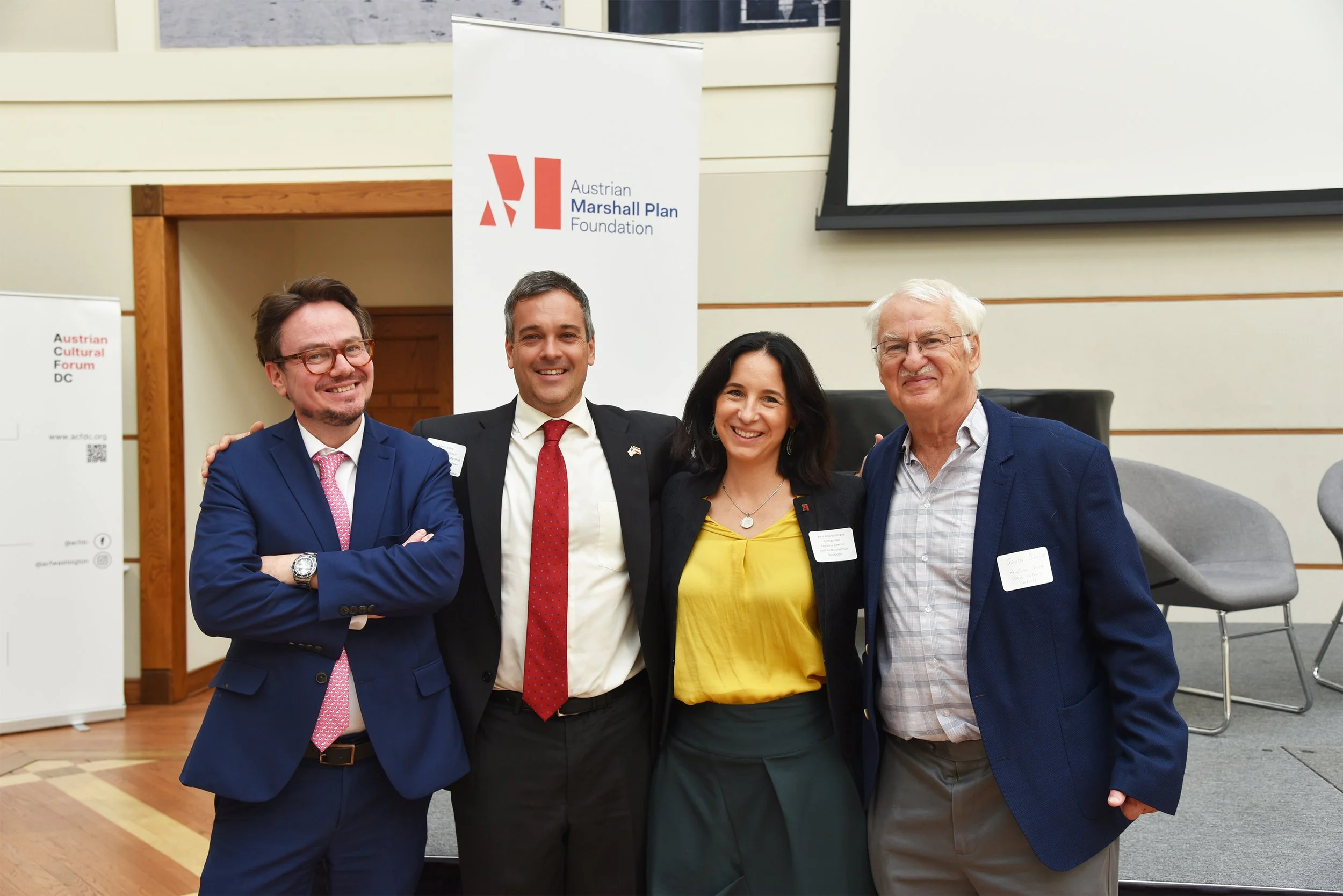 From left: Hannes Richter (Austrian Embassy), Marc Landry (Director, Austrian Marshall Plan Center for European Studies), Karin Emprechtinger (Executive Director, Austrian Marshall Plan Foundation), and Günter Bischof (Director Emeritus, Austrian Marshall Plan Center for European Studies)